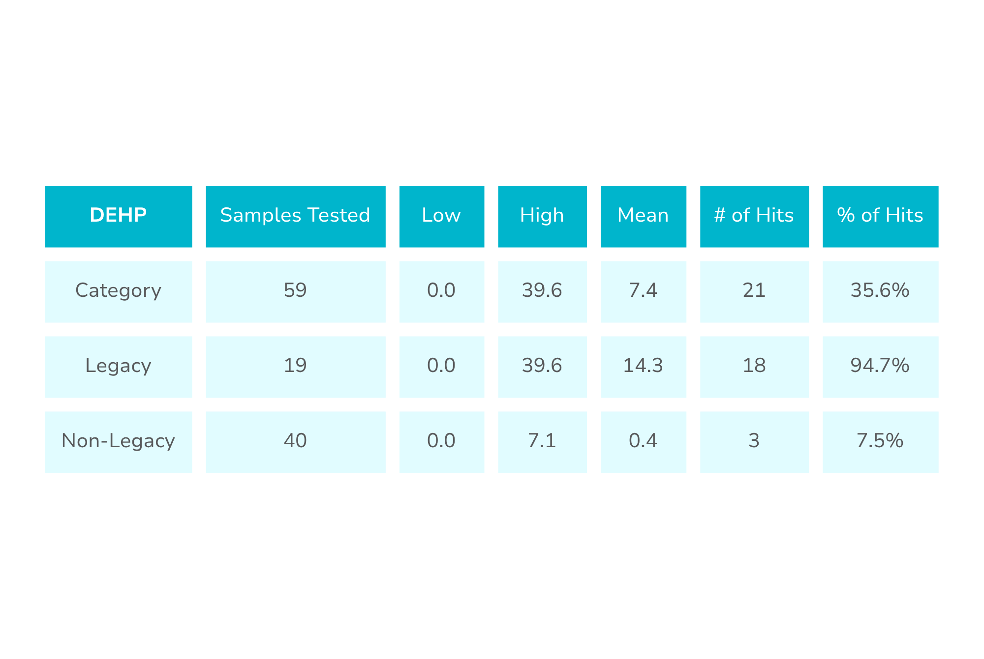 Every year, Clean Label Project conducts 8-12 category studies, which continually find a high percentage of samples containing phthalates. DEHP appears on the FDA’s GRAS list and, due to its role as a plasticizer enhancing plastic flexibility, is commonly found in components of machinery used in food and consumer goods production, including industrial belts, processing equipment, bottles, bags, gaskets, etc…